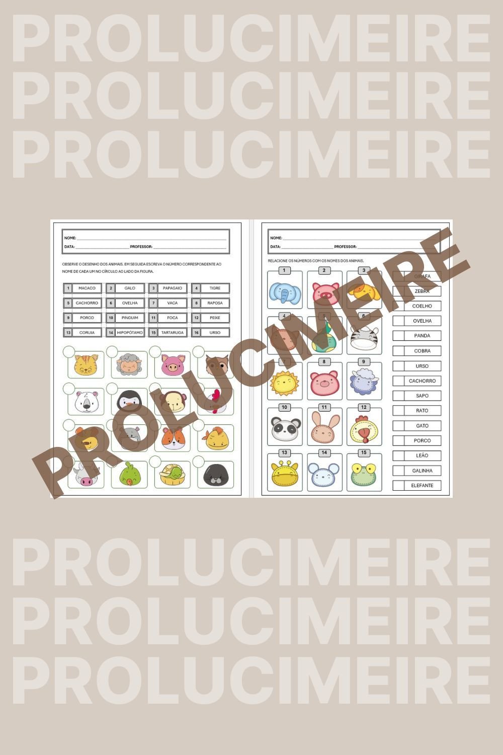 Este material pedagógico traz atividades divertidas com figuras de animais, onde o aluno deve identificar e relacionar cada imagem ao nome correspondente.